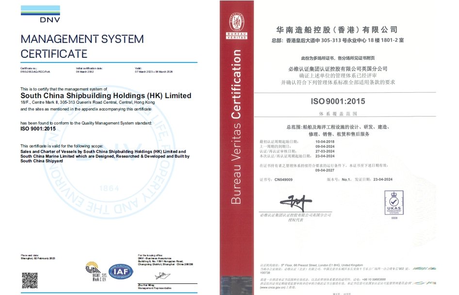 And SCS possessed ISO9001 BV Certificate issued by BV Classification Society as well
