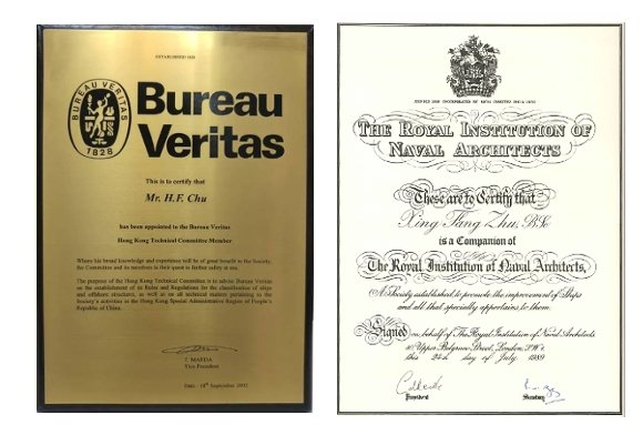 The Chairman of our Group, Mr. H.F. CHU, is a member of the Royal Institution of Naval Architects (RINA) and is authorized by Bureau Veritas as technical consultant in Hong Kong.